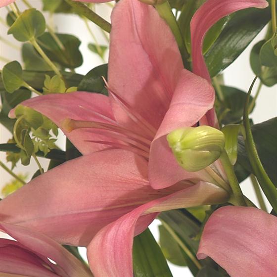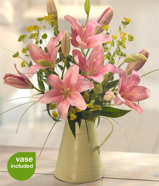 A fantastically fragrant Mother's Day flower arrangement of Pink Lilies. Beautifully presented in a zinc jug this is a simple combination that will look and smell divine.