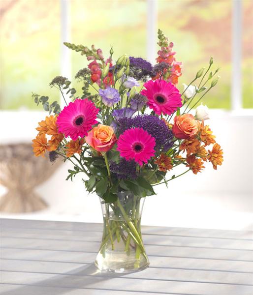 Please note that due to the seasonal availability of flowers it may be necessary to vary individual stems from those shown. Our skilled florists may substitute flowers for one similar in style, quality and value. Where our designs include a sundry item like as a vase or basket it may not always be possible to include the exact item as displayed. If such an occasion arises we will make every effort to replace the item with a suitable alternative.