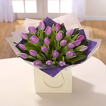 Mauve Tulips beautifully presented in a cream gift bag. Stunningly simple.