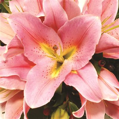 A classic open round wreath of Oriental Lilies and complementary foliage. Size: Diameter - 36cm (14").