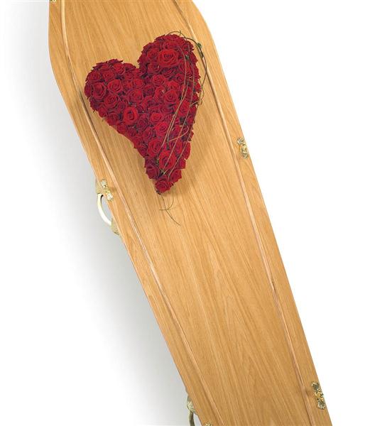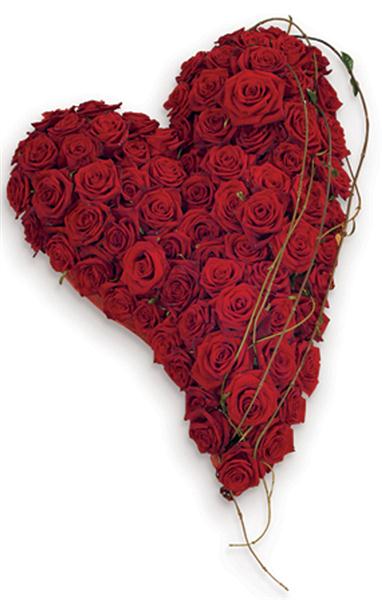A truly stunning contemporary heart shaped tribute of massed red roses with simple bear grass strands and natural foliage edge. Size: Height - 50cm (20") Width - 32cm (13").