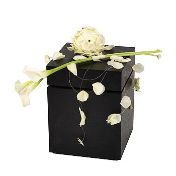 A white Calla Lily with a garland of white Rose petals, an elegant arrangement for an urn. Urn not included.