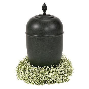 A wreath of white Gypsophila creates a delicate base to an urn. Urn not included.